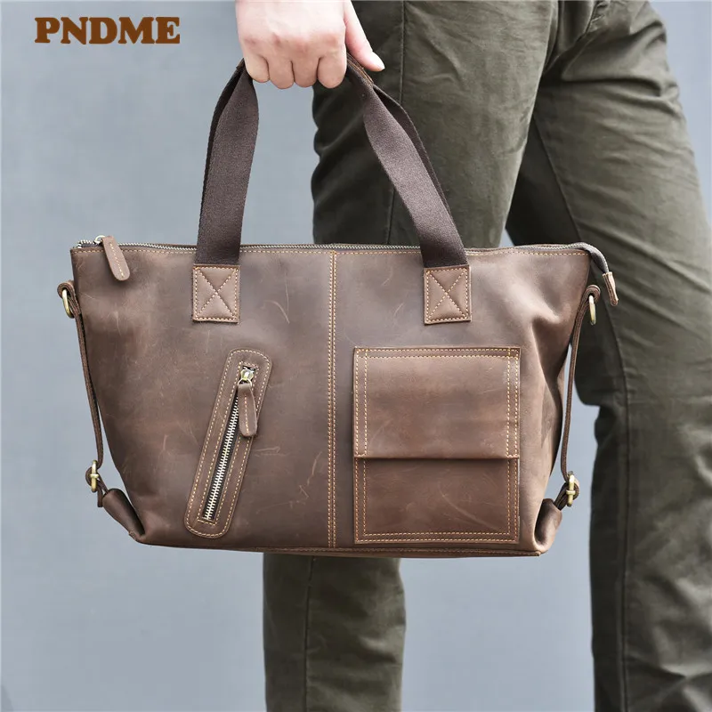 PNDME genuine leather men's briefcase fashion vintage laptop bag casual office high quality messenger bags business handbag look the best product that related to